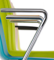 De kunststof variant kan in allerlei kleuren worden uitgevoerd. Ook een gestoffeerde uitvoering behoort tot de mogelijkheden, waarbij uiteraard gekozen kan worden uit een breed scala aan stoffen. De stoel is koppelbaar en kan gemakkelijk verticaal gestapeld worden.