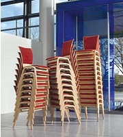 Stapelbare stoelen zijn er in vele varianten. De stoelen op deze pagina blinken allen uit doordat ze goed en hoog gestapeld kunnen worden. Van alle getoonde stoelen kunt u minimaal dertig stoelen opslaan op slechts één vierkante meter. Zeker in grotere kerken, waar regelmatig gevarieerd wordt met de opstelling van de stoelen, is de stapelbaarheid een belangrijk aandachtspunt.